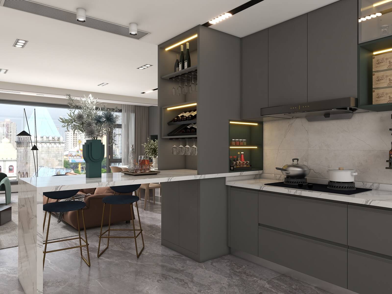 厨房的味道是香甜的,喜欢烹调的居者是欢喜的,呈现出来的食物自然是美味的,带着这份心情融入到空间中,生活的烟火气也可以是浪漫的,连接着这份爱意,诠释着家的味道。