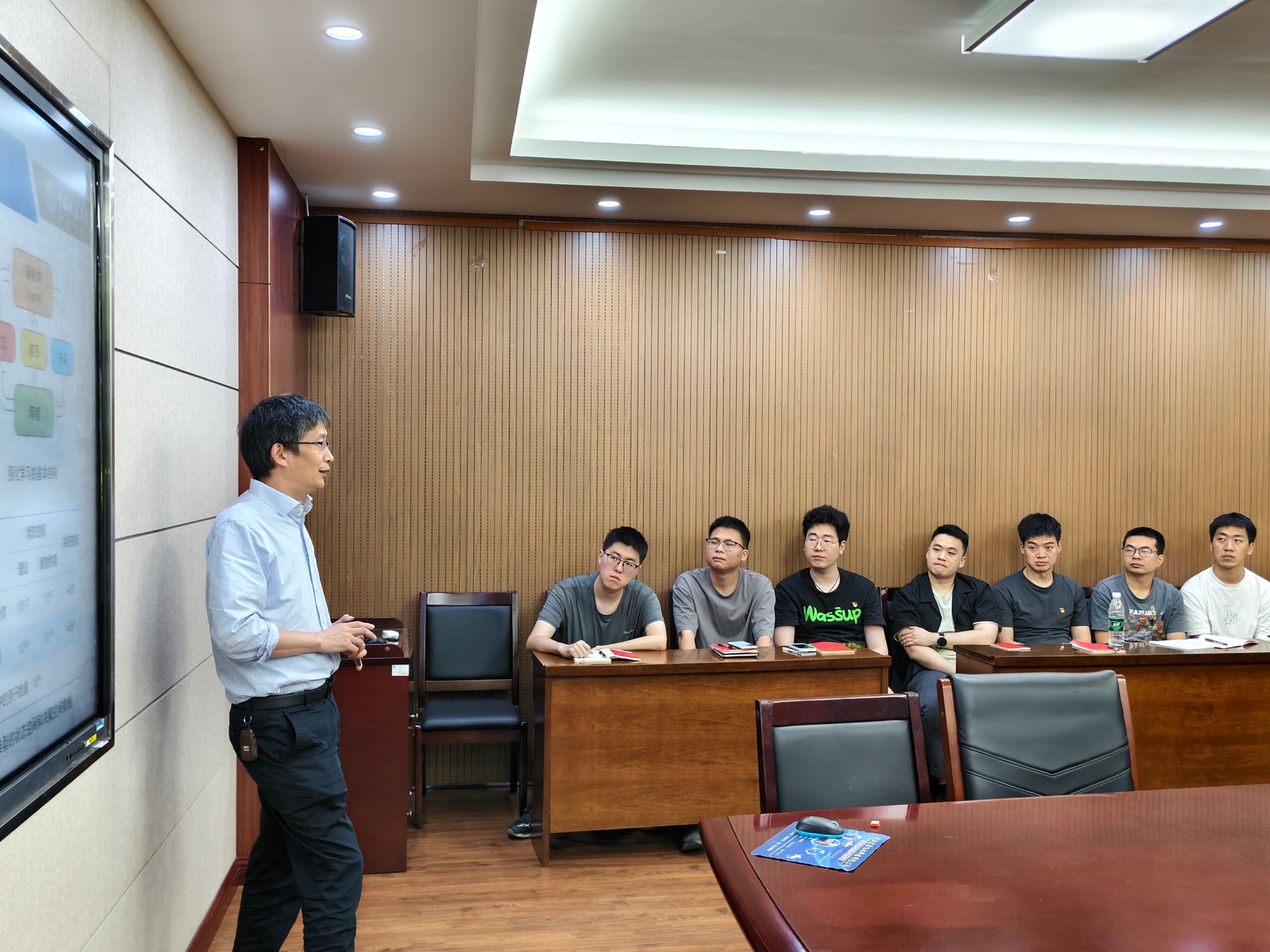 最后,曹院长强调,博一党支部全体同志不仅要以创新思维拥抱技术进步,主动学习并投身前沿科学研究,不怕困难,勇于拼搏,更要坚守人民立场,在参与技术研发的过程中确保科技发展真正成为推动社会进步、增进民生福祉的“红色引擎”。