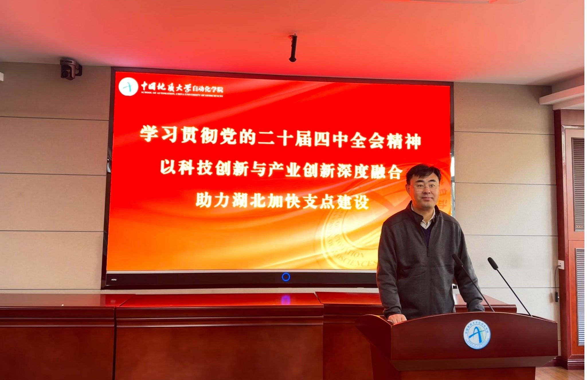 12月1日,自动化学院在信息楼310报告厅举办深入学习贯彻党的二十届四中全会精神专题辅导报告。本次报告邀请武汉大学中国中部发展研究院副院长杨刚强授课,全院教职工参会学习。报告会由学院党委书记朱荆萨主持。