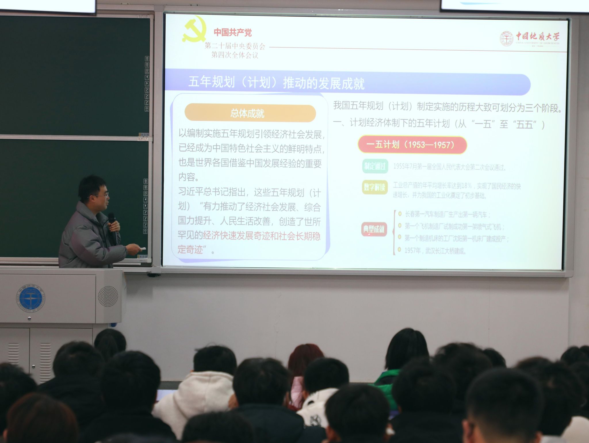 曹阳深入解读党的二十届四中全会精神,对“十四五”规划的发展脉络进行系统梳理,重点聚焦二十届四中全会审议通过的“十五五”规划建议,从核心内容、六大原则、七大目标及十二个方面的重点部署展开详细解读,结合湖北青年七个计划、大别山精神等鲜活案例,引导青年群体深刻把握时代发展大势,将个人理想融入国家发展大局。曹阳鼓励贝博官网学子以榜样为标杆,紧扣国家现代化建设需求,将专业知识转化为创新实践,努力成长为堪当民族复兴重任的时代新人。