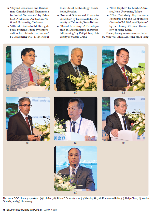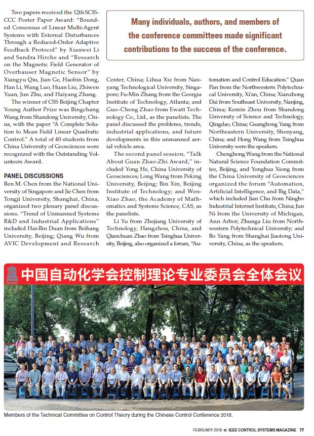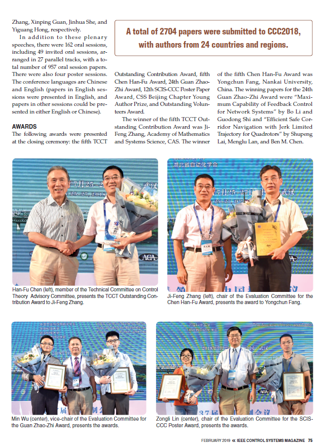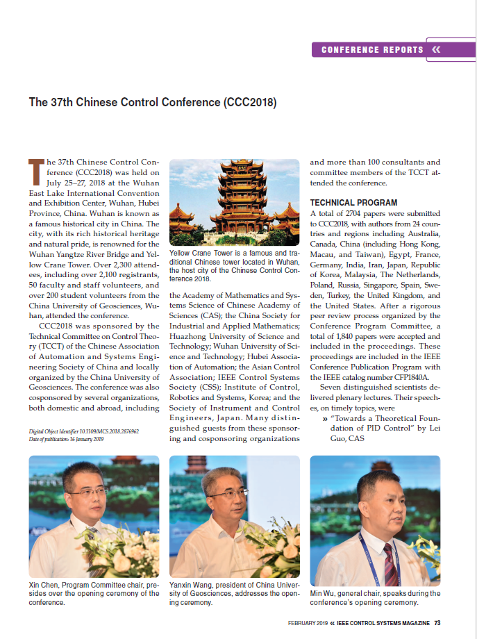 2018年7月25日至27日,由贝博官网承办的第37届中国控制会议(CCC2018)获得圆满成功。本次会议受到国际学界关注,国际知名期刊《IEEE Control Systems Magazine》对会议作了大篇幅报道。