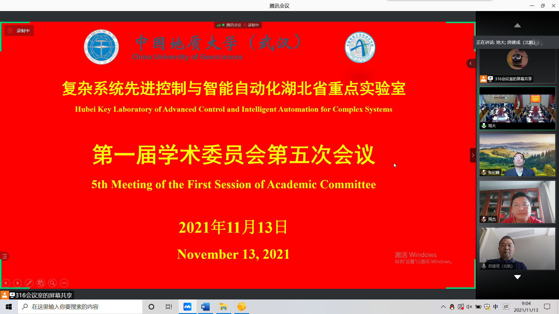 11月13日,复杂系统先进控制与智能自动化湖北省重点实验室(以下简称重点实验室)第一届学术委员会第五次会议在自动化学院召开。重点实验室学术委员会全体成员,湖北省科技厅基础研究处王锦举处长、校科学技术发展院单华生副院长、自动化学院领导及实验室全体成员、实验室开放基金项目负责人和团队成员参加会议。会议通过线上线下结合的方式召开,大连理工大学王伟教授主持会议。