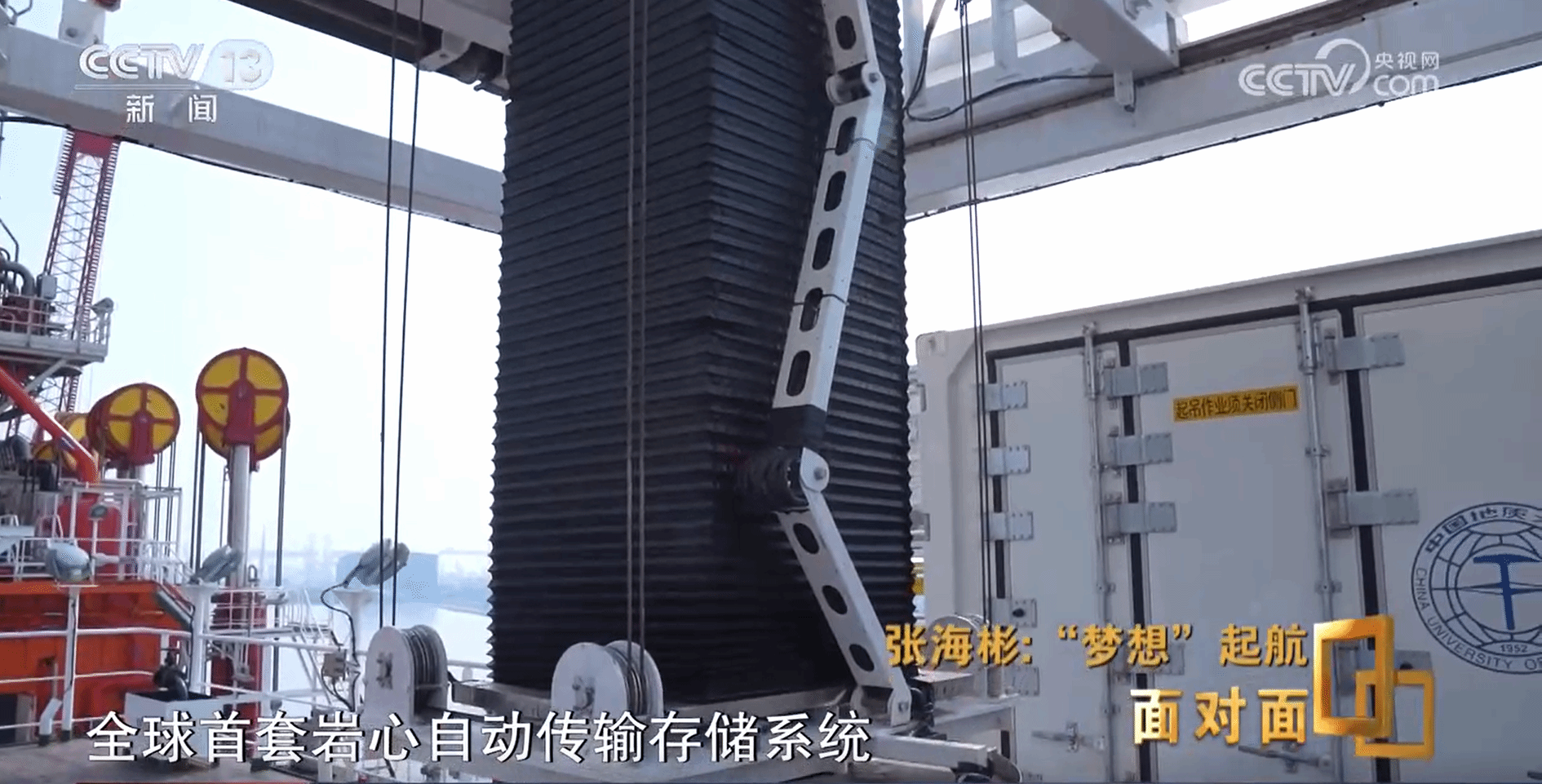 以往大洋钻探船船载岩心转运以人工搬运结合辅助机械助力的模式开展工作,存在转运安全性和效率低、转运时间长及劳动强度大等一系列问题。“梦想”号拥有的全球首套船载岩心自动传输存储系统(以下简称“船载岩心自动传输存储系统”),由岩心自动仓储系统、岩心垂直转运系统、岩心水平转运系统、集装箱自动装载系统、智慧管理与控制系统5部分组成,自动化学院甘超副教授及合作团队成员(包括:贝博官网工程学院、海洋学院、机械与电子信息学院、计算机学院师生及校外企业合作伙伴)参建船载岩心自动传输存储系统,开展了大量分析、设计、实验、安装、调试和海试工作,为顺利建造该系统、助力“梦想”号建成入列、推动海洋强国建设贡献力量。