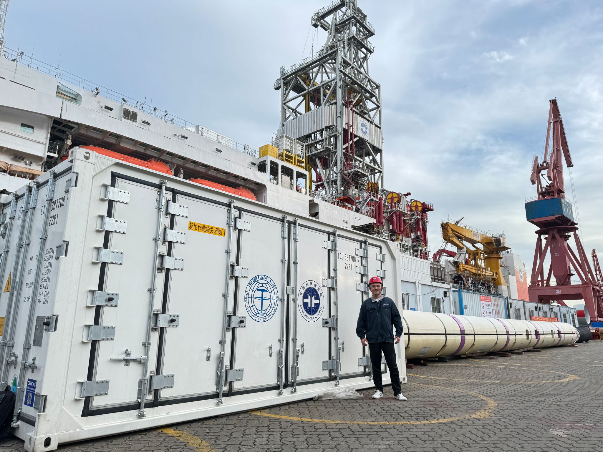 甘超副教授在“梦想”号开展安装和调试工作