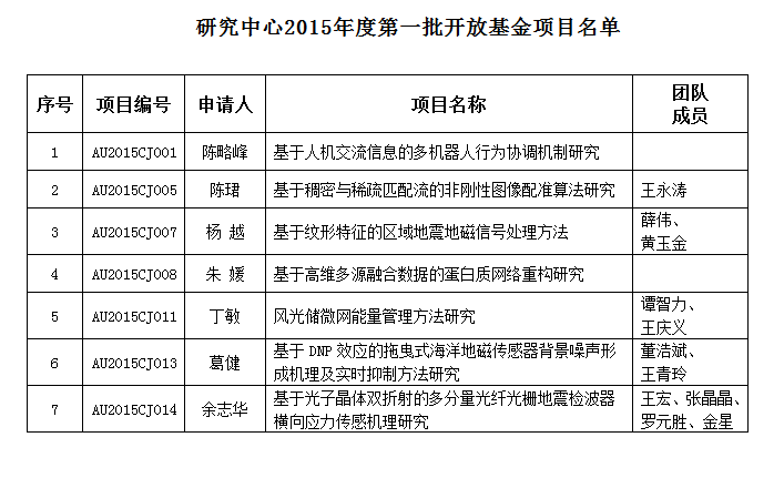 附:研究中心2015年度第一批开放基金项目名单