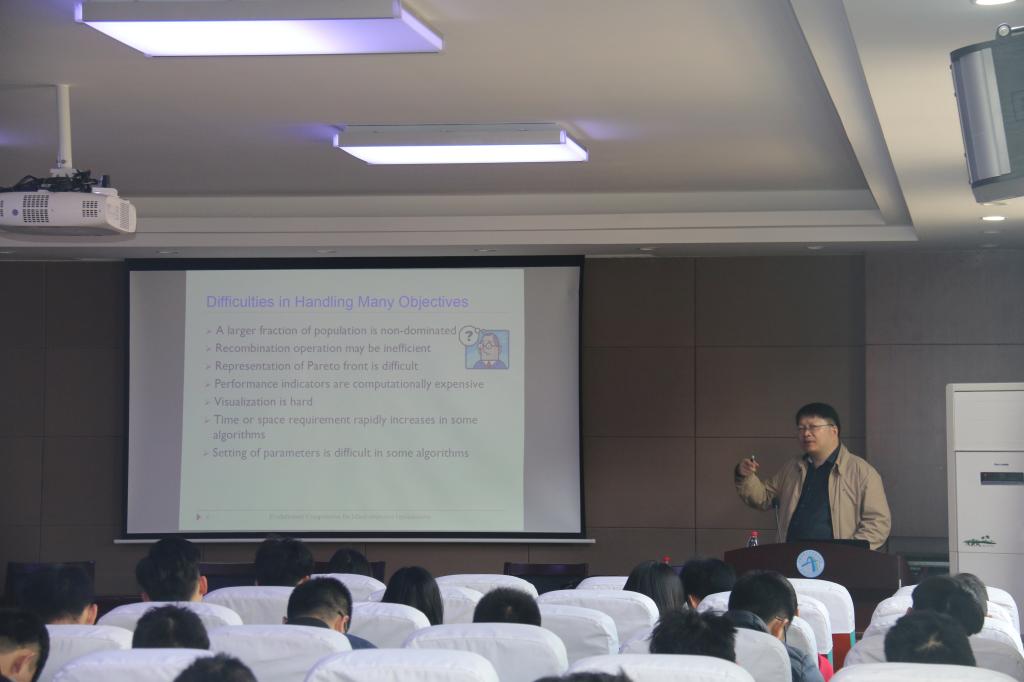 2018年4月8日至9日,英国德蒙福特大学杨圣祥教授来贝博官网为研究生授课。《智能优化与最优化方法》是由杨圣祥教授与贝博官网李长河副教授共同讲授的研究生课程。课程内杨圣祥教授分三场为研究生授课。
