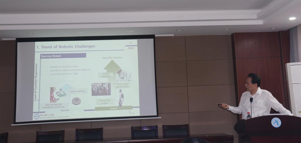 4月26日,韩国汉阳大学韩彰秀教授来贝博官网作了题为《Human-Robot Cooperation (HRC) Technology》的学术报告。