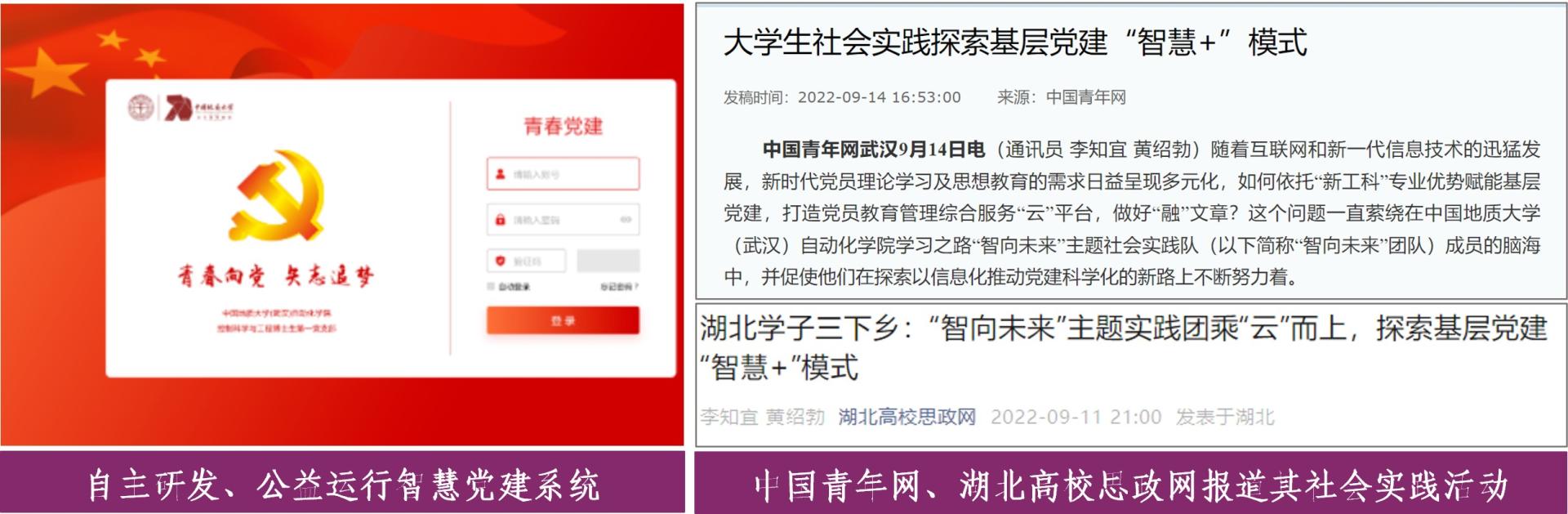 勤于探索、勇于实践。他携手团队以信息技术赋能党支部建设,200多个日夜熬战,无数次的论证、推倒,无数次的解构和建构,“青春向党”智慧党建系统在团队的共同努力下成功上线并公益运行,辐射校内外30余个学生党支部,助力基层党建走“新”更走“心”。为进一步推开基层党建的信息化“窗口”,他与团队聚焦基层党建“智慧+”开展实地调研,发放有效问卷1100余份,足迹遍布20多个高校、企业和村镇,不断凝聚“红色合伙人”,扩大党建“朋友圈”,团队获评省级社会实践优秀团队,事迹被中国青年网、湖北高校思政网等主流媒体报道30余次。支部连续3年获校级先进基层党组织,入选全省高校党建工作样板党支部培育创建单位。(通讯员:王向东、黄兰华)