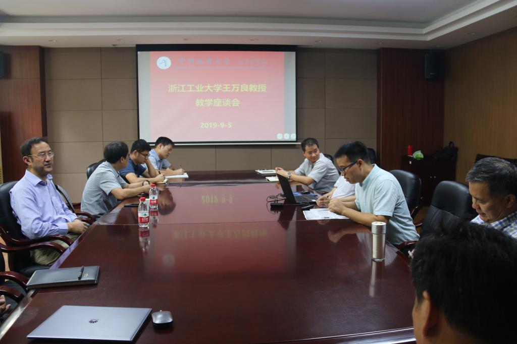 9月5日上午,浙江工业大学王万良教授应邀来贝博官网进行教学研究交流,举行了教学座谈会。