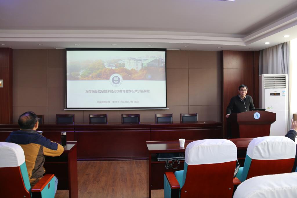 12月12日,华中师范大学李鸿飞教授应邀来贝博官网作了题为《深度融合信息技术的高校教育教学模式创新实践》的教学研究报告。