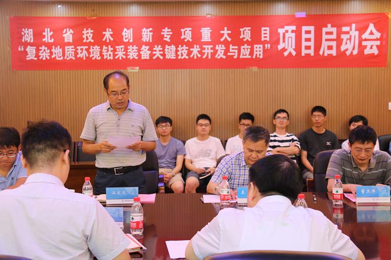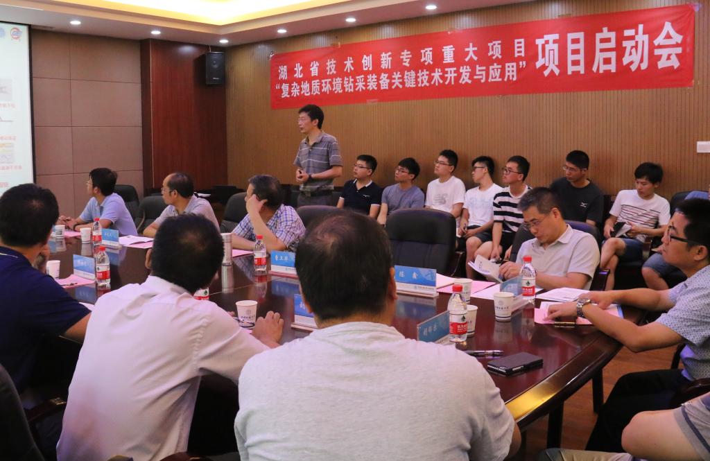 2018年713日,湖北省技术创新专项重大项目“复杂地质环境钻采装备关键技术开发与应用”项目启动,贝博官网曹卫华教授作为技术负责人汇报了该项目的实施方案。湖北省科技厅高新处、湖北省地质局科技处、湖北省城市地质工程院、BB贝博艾弗森官网(武汉)、中国地质装备集团有限公司等相关单位的领导、负责人及项目组其他成员参了会议。