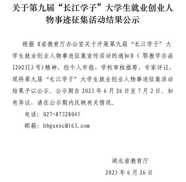 该活动由湖北省教育厅主办,旨在全面贯彻落实党的二十大和湖北省第十二次党代会精神,落实立德树人根本任务,实施就业优先战略,加强大学生就业创业宣传,发挥先进典型示范引领作用,强化就业育人工作实效,推进形成全社会关心支持大学生就业创业的良好氛围。本次活动设置了开拓创新、自主创业、基层就业、参军入伍、自强奋进共5种类别。