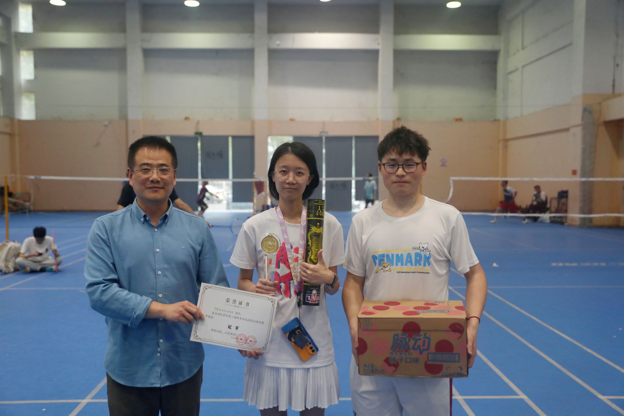 经过短暂的休整,决赛在当天下午两点准时打响!各位运动员拿出了百分百的专注度,他们灵活穿梭于球场,用精湛的技巧、默契的配合、精彩的对决博得阵阵欢呼与掌声。在大家的共同努力和积极参与下,整场比赛紧张激烈又妙趣横生,冠军、季军、亚军也相继产生!陈鑫副院长为获奖团队颁奖并合影留念。