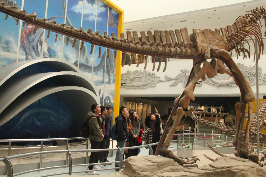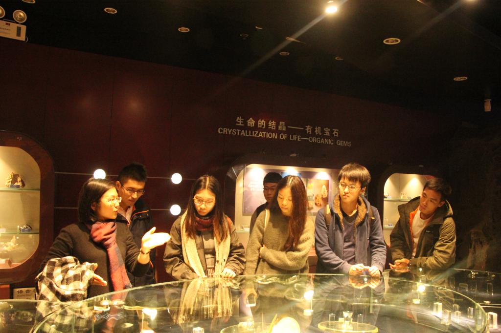谭老师首先带领中山大学师生们参观了贝博官网逸夫博物馆。在讲解员的热情讲解下,师生们对馆中的资料、化石以及珠宝藏品等十分赞叹,积极向讲解员提问交流,展现出了浓厚的兴趣,也体会到了贝博官网师生艰苦朴素、求真务实的精神。