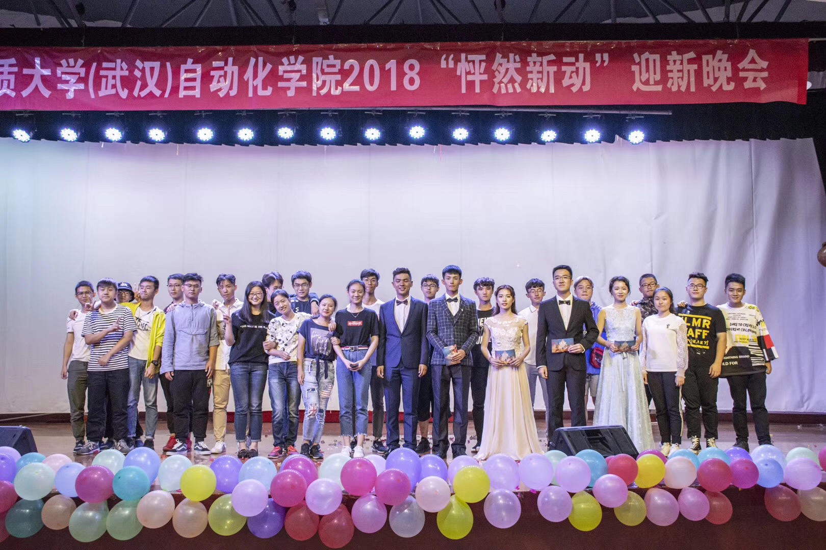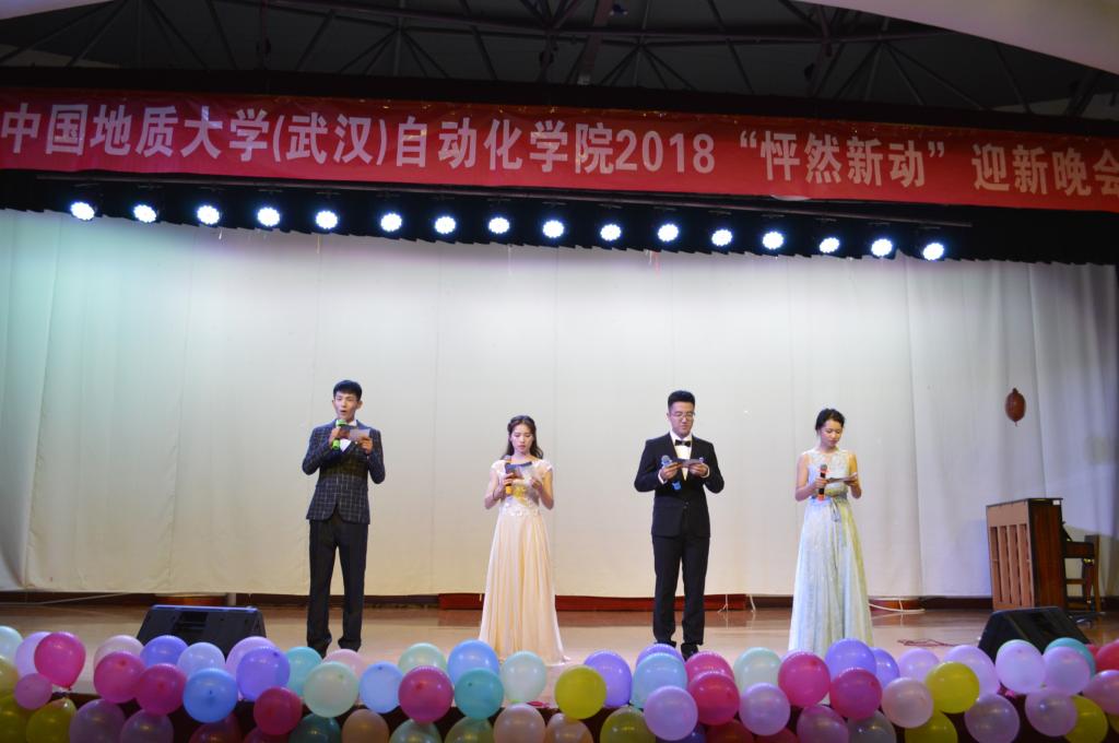 随着Imperial throne乐队摇滚音一起呐喊,这场盛大的迎新晚会正式拉开帷幕。It's my life,狂野的烟熏嗓唱出南望山人不羁的气魄;歌曲《突然好想你》,在电音吉他的引力下召唤出百人大合唱;beyond的不再犹豫,在架子鼓手的挥舞中迸发出新的生命力 。三首经典串烧落幕后,向舞台昂首走来的是由大二的齐天宇、付佳和新生靖越、曾宇璇组成的最靓主持团。在他们青春洋溢富有张力的介绍中,大家聆听了秦雪同学所带来的《千年等一回》的钢琴独奏;欣赏了杨婷同学优雅的拉丁舞姿;由大三232161班部分同学演绎的小人舞和军训教官的惊喜对唱更是引得在场的同学们捧腹大笑。
