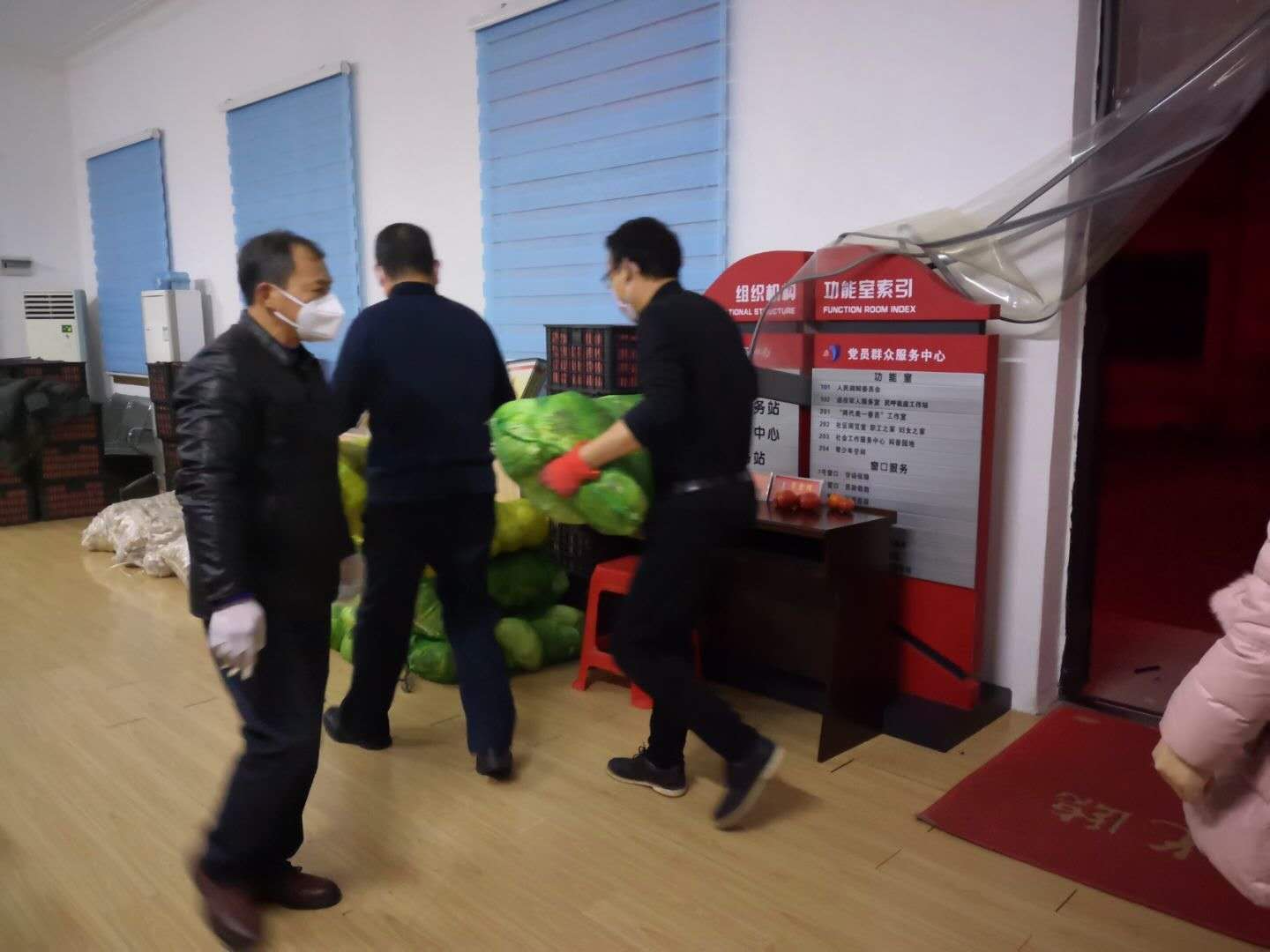 帮助社区搬运捐赠的生活物资