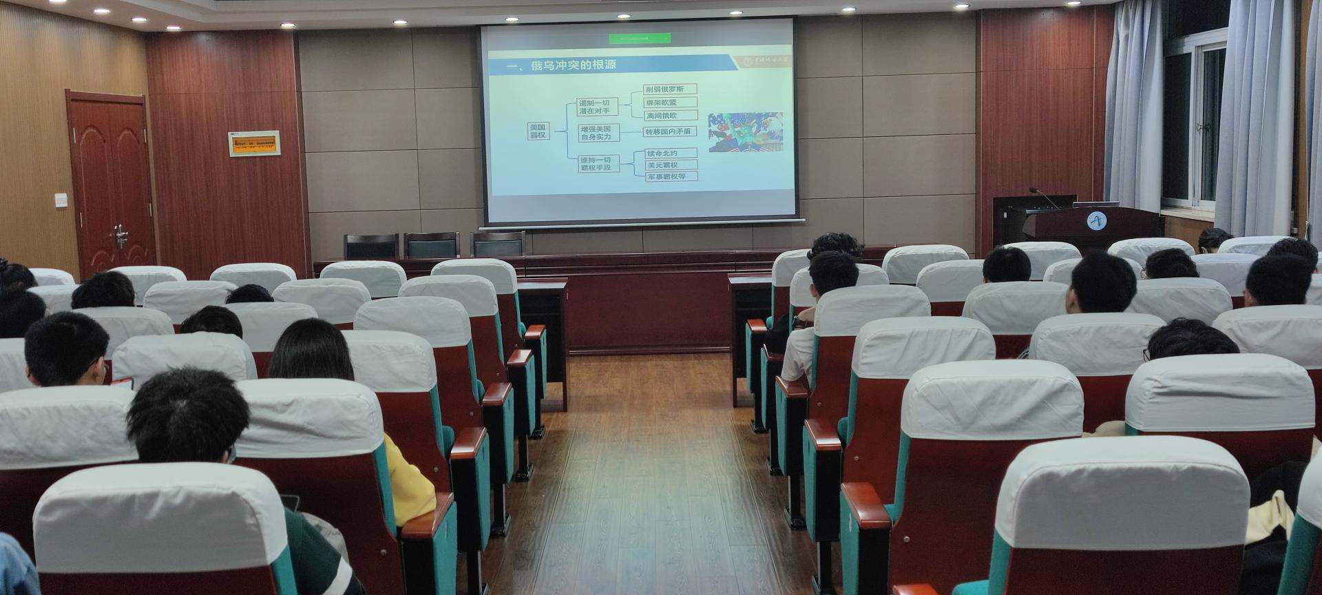 在课堂上,郭关玉副教授首先以近期俄乌冲突问题为突破口,在简要分析当前局势后,精确指出了:美国是此次俄乌冲突发生的始作俑者,并以此为论点,描述了当前国际环境下,美、英、日等西方国家针对俄罗斯以及中国蓄意抹黑。作为当代大学生,我们应该认清国际形势,以正确的人生观、世界观和价值观对待世界格局的变迁,以积极奋进的姿态助力祖国的繁荣与昌盛。