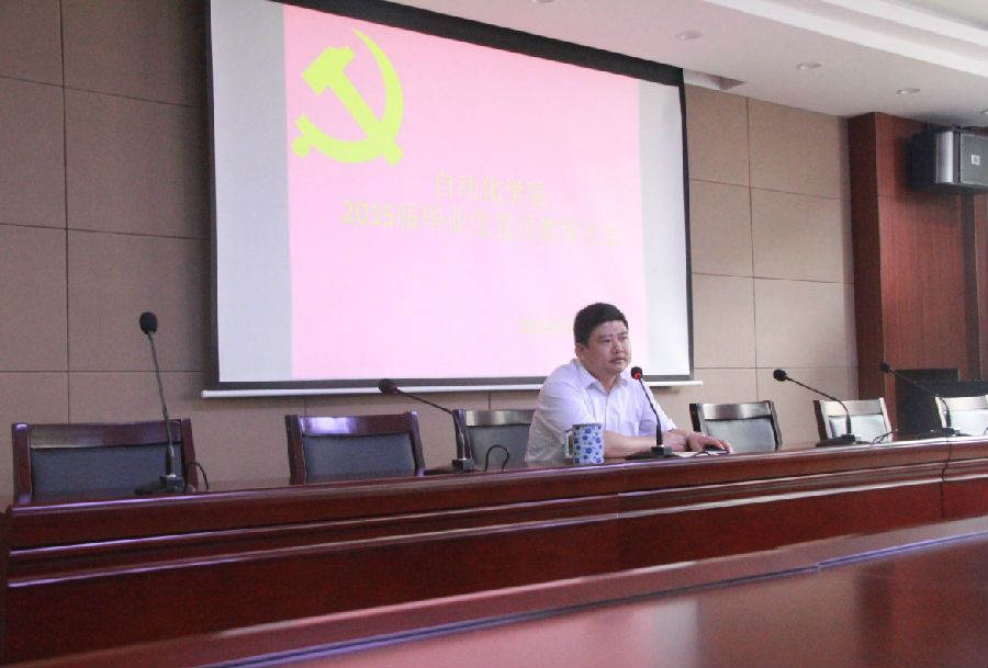 2015年6月16日上午9点,自动化学院在信息楼310召开了2015届毕业生党员教育大会。会议由院团委书记谭文伦老师主持,学院党委副书记何建新老师做了题为“加强党性、树立表率”的报告,全体毕业生党员及学工组许彦老师参加了此次会议。