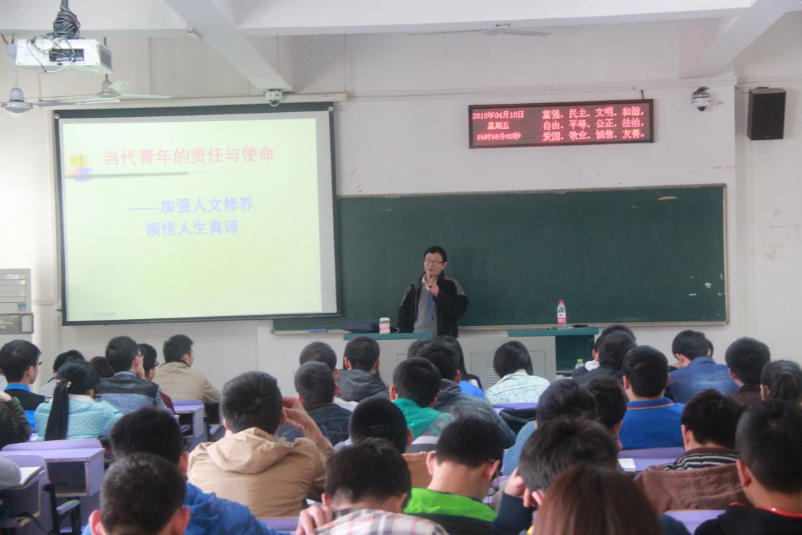 (通讯员  鲍金宇)2015年4月10日下午四点,自动化学院党课第三讲在教三楼506教室举行。本次党课由校党委组织部部长刘亚东教授主讲,其授课主题为“当代青年的责任与使命”。