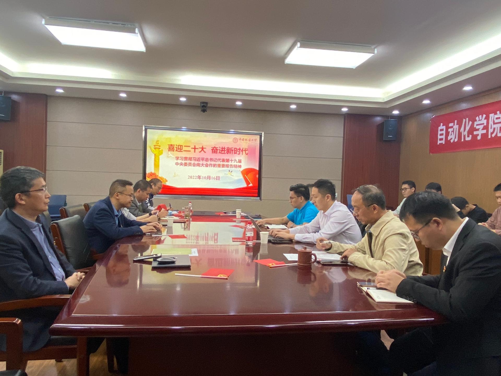 自动化学院党委高度重视,第一时间精心组织师生以系所(中心)、党支部、班级、宿舍为单位进行集中收看党的二十大开幕会,认真听取习近平总书记铿锵有力的报告。大家精神振奋,热情高涨,不时爆发热烈的掌声。在聆听总书记讲话过程中,师生们认真做笔记,会后学院党委通过集中召开座谈会的形式深入学习领会党的二十大精神。