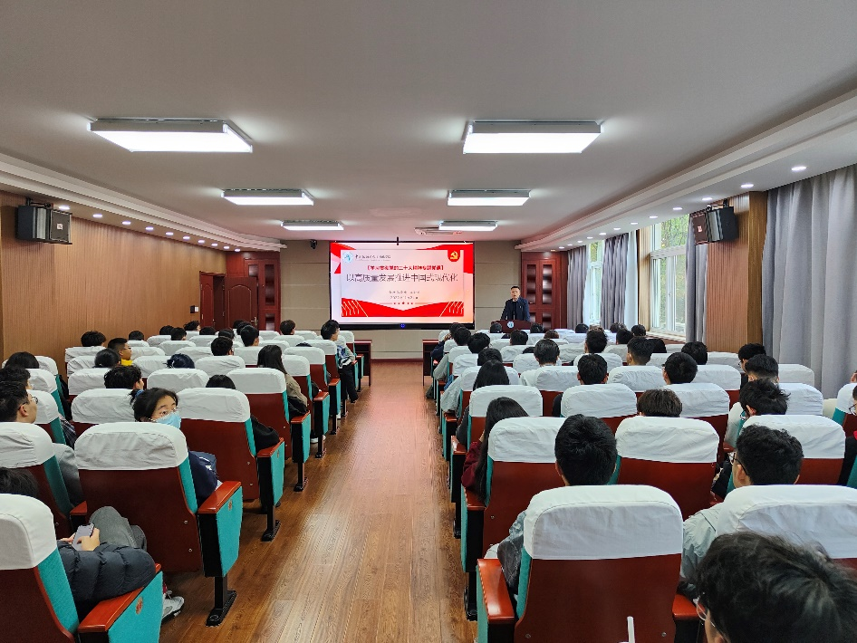 会上,王向东以《学习贯彻党的二十大精神——以高质量发展推动中国式现代化》为主题讲授党课。他首先围绕党的二十大主题、主要成果和重大意义,过去五年的重大成就和新时代十年的伟大变革,特别是党的十八大以来身边发生的巨大变化等方面,对党的二十大主要内容进行了全面解读。