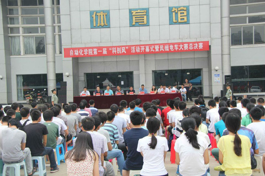 2015年5月28日下午三点,自动化学院第一届“科创风”系列活动之风磁电车大赛总决赛在体育馆门口顺利进行,副校长赖旭龙、教务处副处长王兴、学工处副处长马彦周、校团委副书记胡肖、学院党委书记董浩斌、学院副院长曹卫华、学院副书记何建新、大学生创新创业中心副主任张华、学院团委书记谭文伦参加了此次活动。