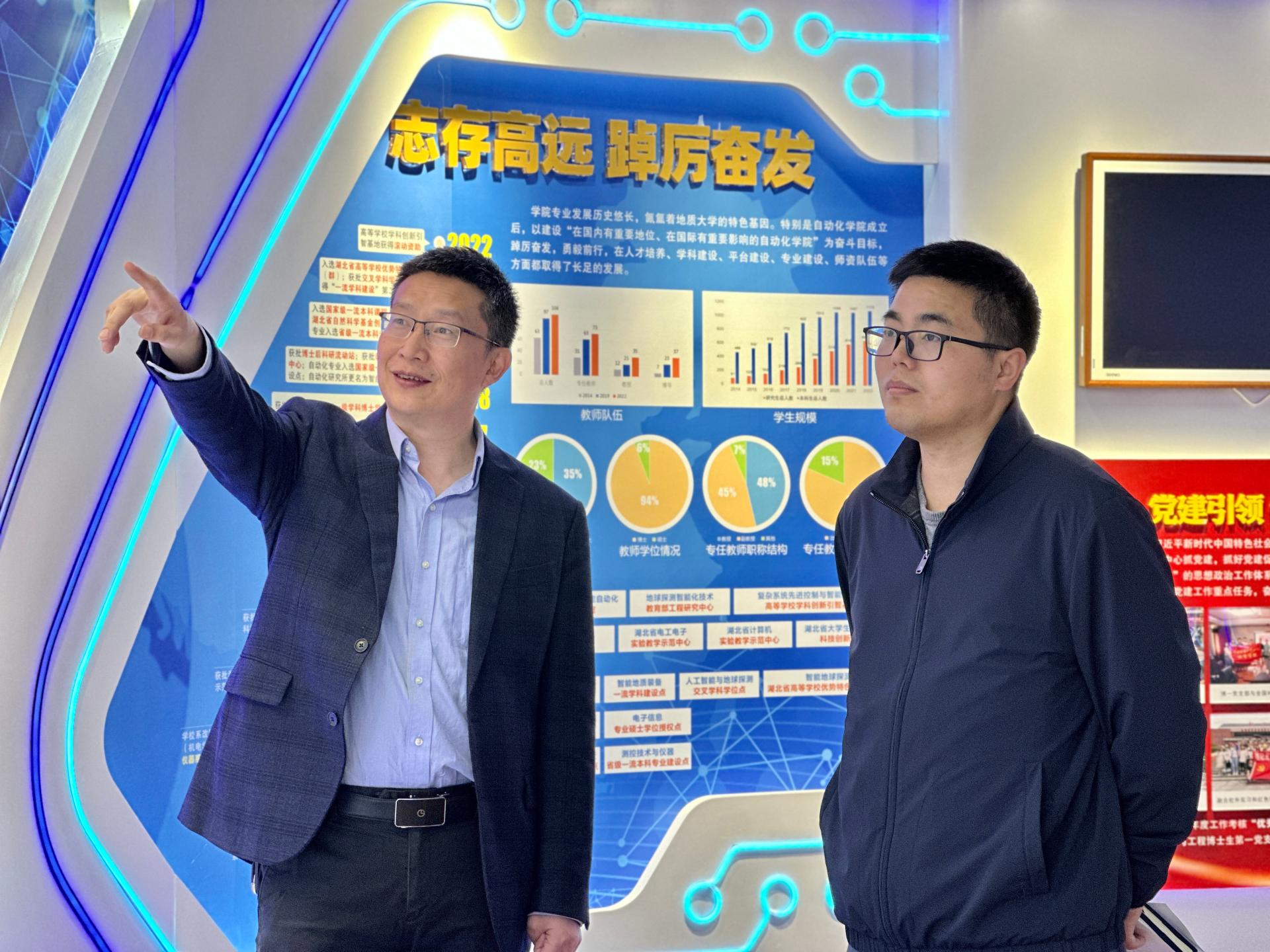 随后,李少杰一行前往自动化学院参观了学院研究生工作室及学院文化室,学院院长曹卫华教授就学院历史沿革、师资力量以及本科生、研究生教育等进行了介绍他提到,学院坚持以立德树人为根本任务,打造了走进自动化·新工科创新人才培养实践工程研究生学术年会等学院特色品牌活动,在高水平师资队伍和多层次培养平台的支持下,提升了学院学生的创新能力也拓宽了国际化视野