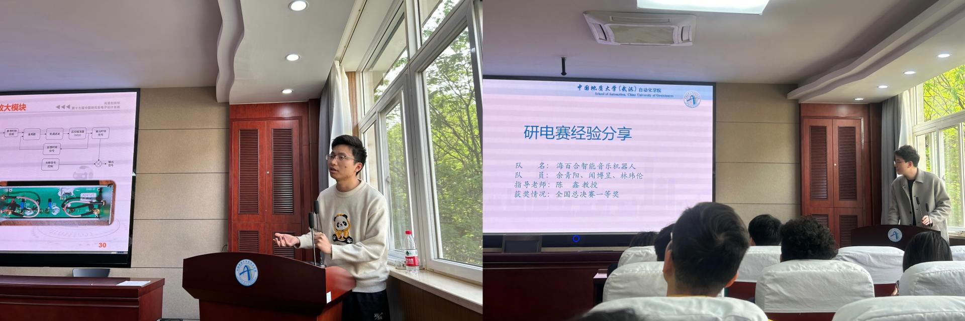 为进一步促进贝博官网电子信息类研究生工程实践素质的培养,深入推动研究生培养模式改革与创新,进一步加强中国研究生电子设计竞赛(以下简称“研电赛”)的备赛、参赛工作。在学校研究生院(党委研工部)的支持指导下,自动化学院积极承担第十八届研电赛的备赛工作,于4月25日14:30在信息楼310报告厅成功举办了研电赛经验分享交流会。自动化学院创新创业专员王艺霖、上届优秀团队代表梁召淮、夏远庚、张阳政和闻博昱,以及来自多个学院的参赛队伍近100人参加此次分享会,学院兼职辅导员吕沅玉主持会议。