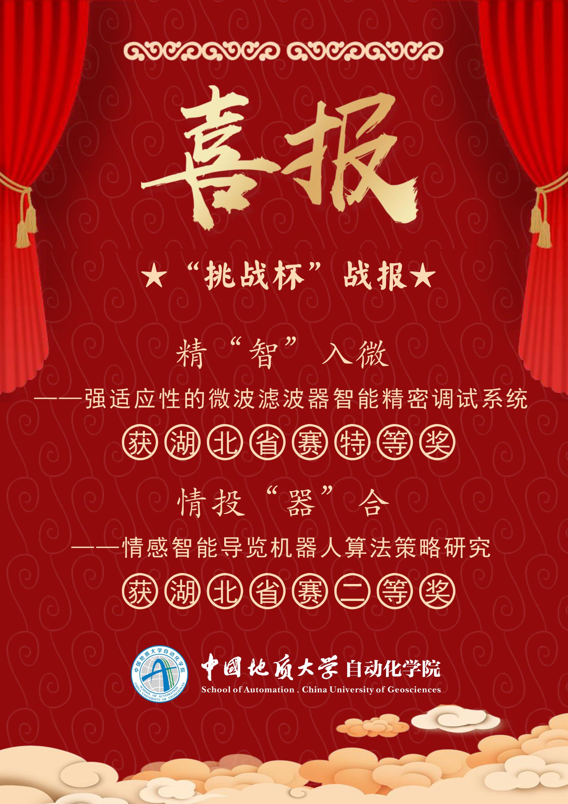 5月27日-28日,由共青团湖北省委、湖北省科学技术协会、湖北省教育厅、湖北省学生联合会主办,武汉纺织大学承办的湖北省第十四届“挑战杯·中国银行”大学生课外学术科技作品竞赛决赛顺利落下帷幕。自动化学院两个入围项目在全省109所高校的1276个省赛项目中分别摘得特等奖与二等奖,是学院在该项赛事中取得的历史最好成绩。其中,学院获评的特等奖项目在经专家综合评审后,目前已推荐至全国决赛进行角逐。