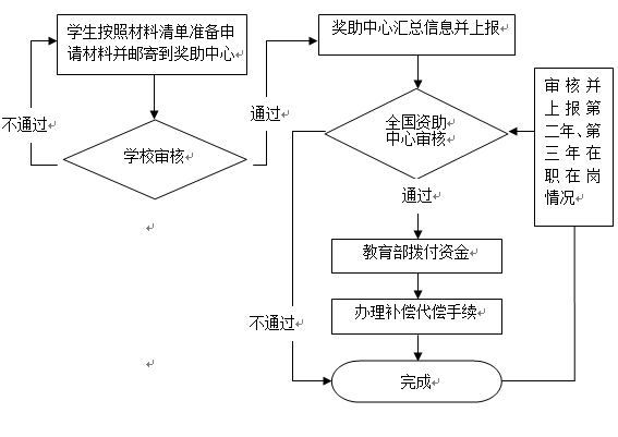 国家对到中西部地区和艰苦边远地区基层单位就业的获得学费和国家助学贷款代偿资格的高校毕业生采取分年度代偿的办法,学生毕业后第一年、第二年代偿学费或国家助学贷款总额的33%,第三年偿还34%,三年代偿完毕。获得代偿的同学在第二年和第三年的5月30日以前在代偿系统中填写当年在职在岗证明并向学工处大学生奖励与资助中心寄送当年在职在岗证明(附件7),不按时寄送将无法办理下一年的代偿手续。离职或工作单位有变动的毕业生在工作变动时应及时与资助中心联系,并寄送相关证明。