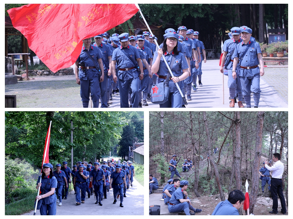 穿红军服,重走红军路,感受革命艰辛;听革命故事,回顾学习内容,交流学习心得,感悟红色文化。行军路上,在各位党委委员的带领下,大家唱起了红歌。嘹亮的歌声鼓舞了士气,同志们像极了重镇旗鼓、奔赴战斗的革命战士。