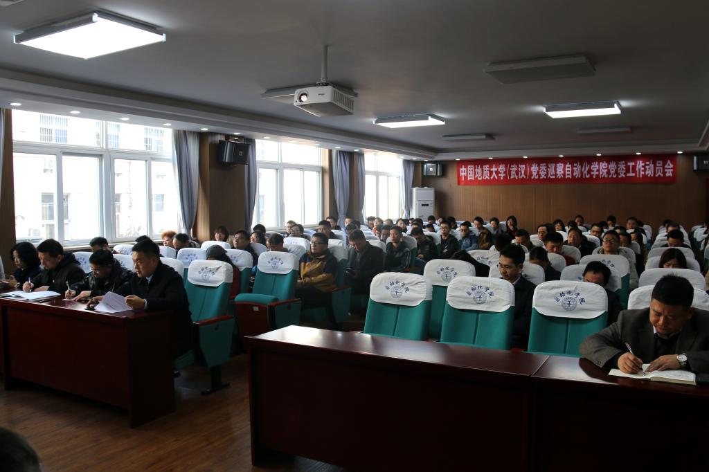 2019年12月11日上午11:00,BB贝博艾弗森官网(武汉)党委巡察自动化学院党委工作动员会在自动化学院信息楼310报告厅召开。学校党委副书记、学校党委巡察工作领导小组副组长唐辉明,学校党委第四巡查组成员张基得、范陆薇、胡兰兰、李正汉、宋干锋,学院全体教职工、离退休老同志代表、学生代表等近90人参加会议。院长吴敏主持会