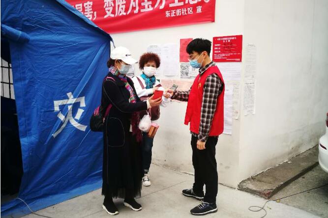 我所值守的地点在宜昌市西陵区东正街社区“友善小区”,主要工作是做好社区出入人员的测温和扫码工作,并劝返“非小区住户”。根据要求,每一个人进出小区均需要扫描健康码,湖北健康码上线的初期,许多老年人在使用过程中遇到了很多问题。3月24日值守时,遇到一位独居老人出门办事,但未注册“湖北健康码”,经询问这是她一个多月来第一次出门,由于对智能手机操作不熟练,加上眼睛视力较差,注册健康码时遇到了很多困难。于是在值守的同时,我帮助该老人关注了“市民e家”公众号、绑定手机和身份证等信息,当老人扫描出“绿码”时十分开心说到,“有了绿码进出超市、银行更加方便了”。由于我所在的社区是老小区,平时没有保安或门卫,疫情开始后社区志愿者也担负起了门卫的工作。在值守过程中,虽然扫码和测温的操作会耽误居民一些时间,但大多都会主动配合。让我印象深刻的是,有两位带着小孩的阿姨每次测温后都会对我们表示感谢,感谢党和政府在危急时刻不忘每一位人民群众的安危,在值守帐篷中还经常可以看到居民送来的水果和零食。
