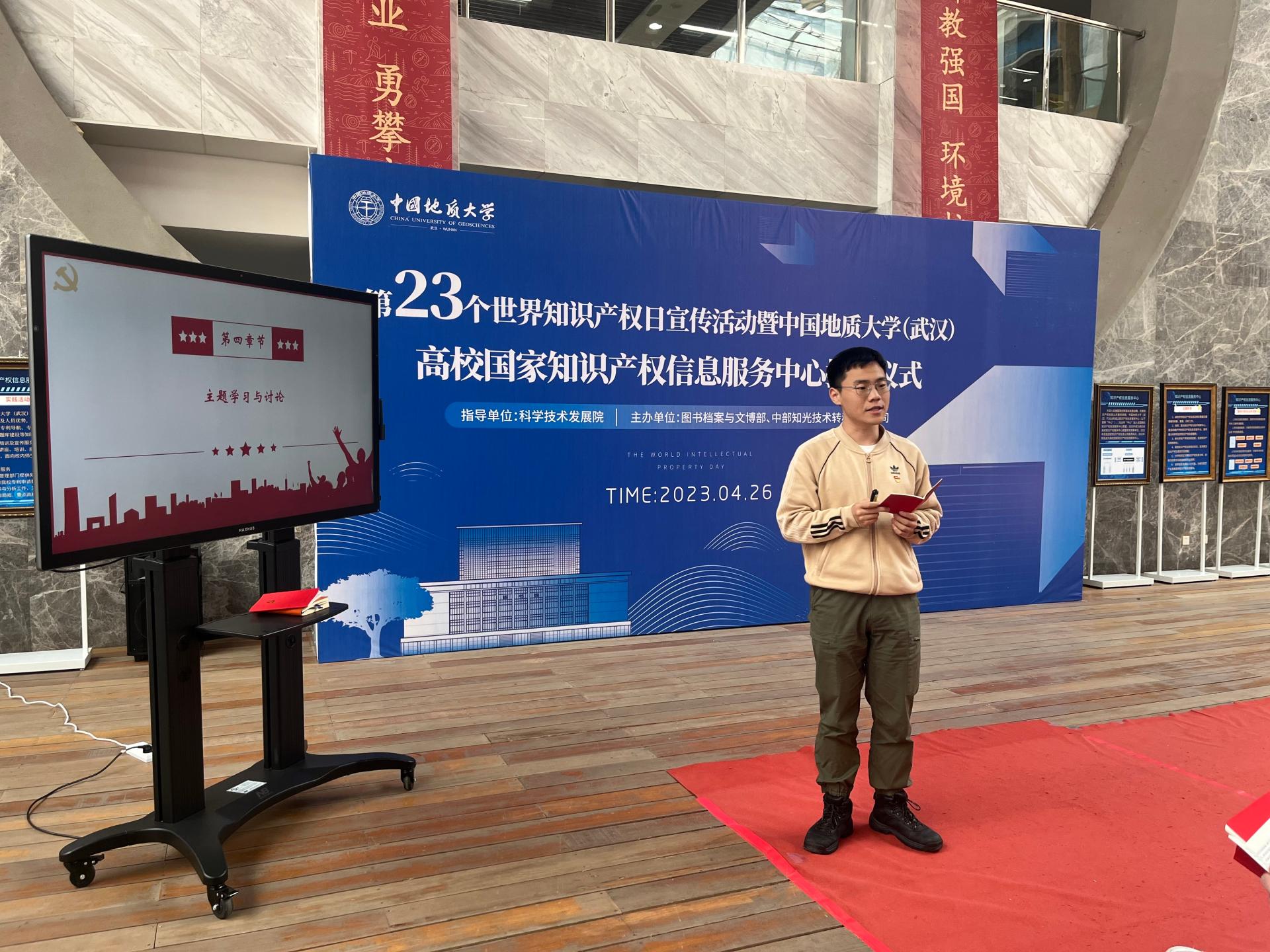 会前,支部成员集体参与了第23届世界知识产权日宣传活动并见证了BB贝博艾弗森官网(武汉)“高校国家知识产权信息服务中心”挂牌仪式和信息服务中心与自动化学院签署学科服务战略协议仪式,为支部同志上了“尊重劳动、尊重知识、尊重人才、尊重创造”的生动一课。