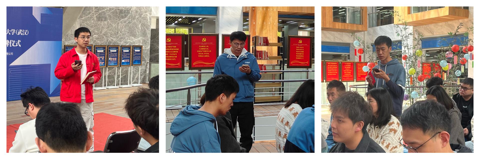 在齐唱国歌、重温入党誓词后,博一党支部成员集体学习了党章相关内容。在历次主题党日专题文件学习过程中,基于支部成员自主研发“青春向党”智慧党建系统,党支部探索出一条“会前学习-会中讨论-代表总结-会后交流”的学习新路径,极大提高了支部成员学习积极性和主动性,提升党员教育实际成效。在学习讨论环节,三个党小组积极交流讨论,党小组党员代表凝练总结发言并向大家分享组内学习心得。
