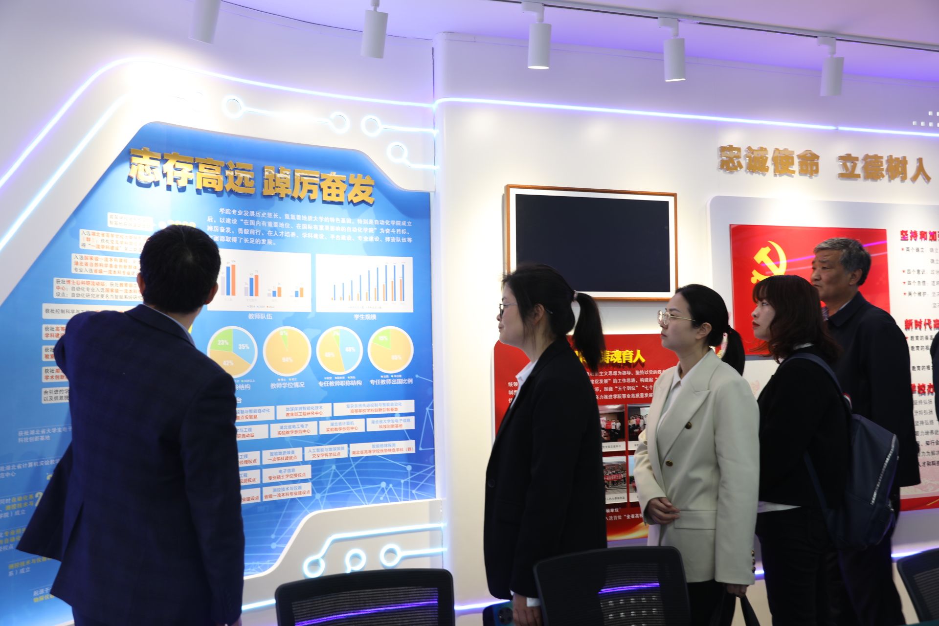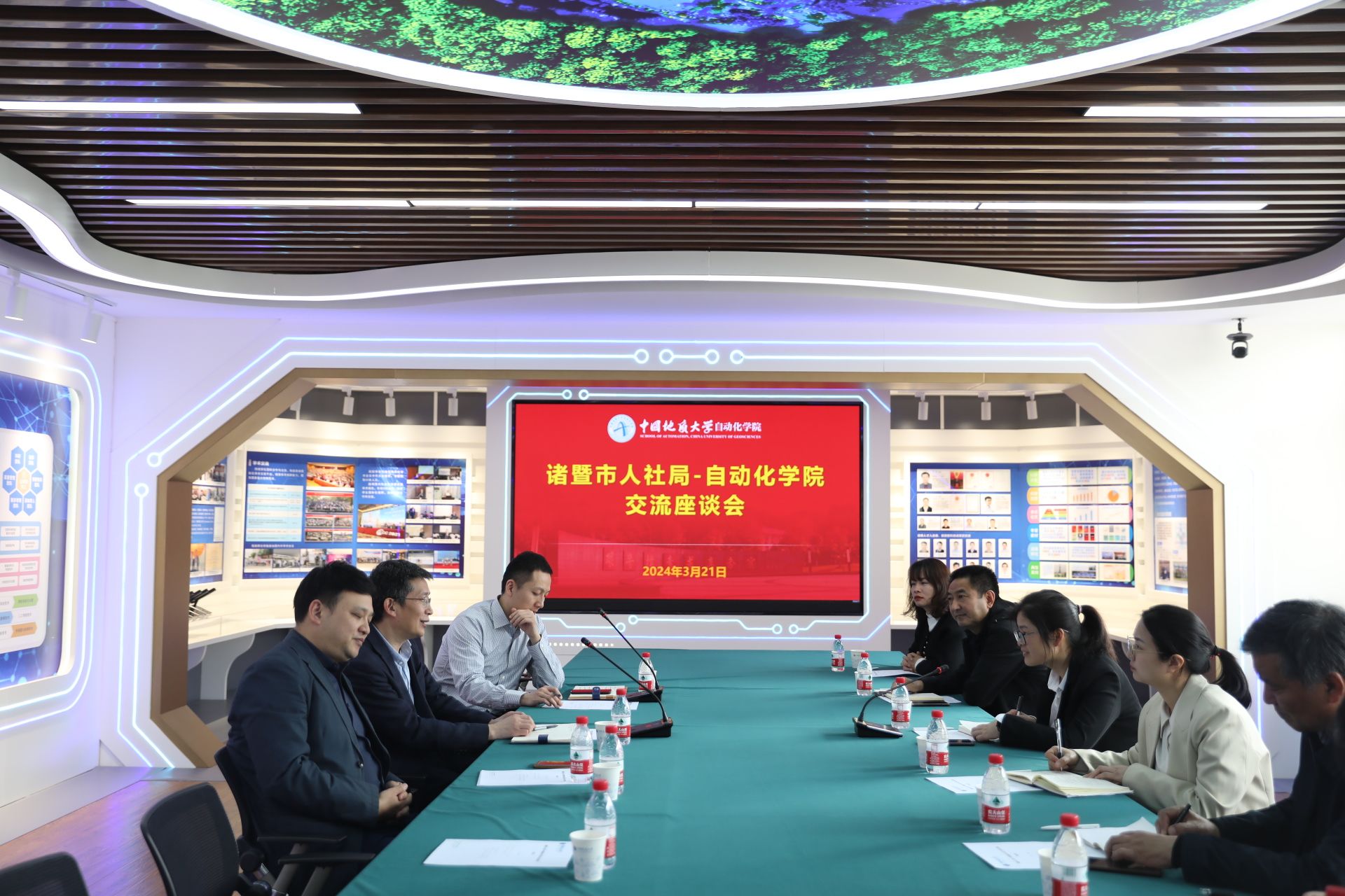 曹院长首先向来宾展示了305文化室,介绍自动化学院成立10周年来人才培养、科学研究以及杰出校友等方面的发展状况。座谈会上,杨局长首先介绍了诸暨的发展情况,并对此次“政企联动”进院校之行表示期许,期待有更多的高学历高层次人才来到诸暨就业创业。