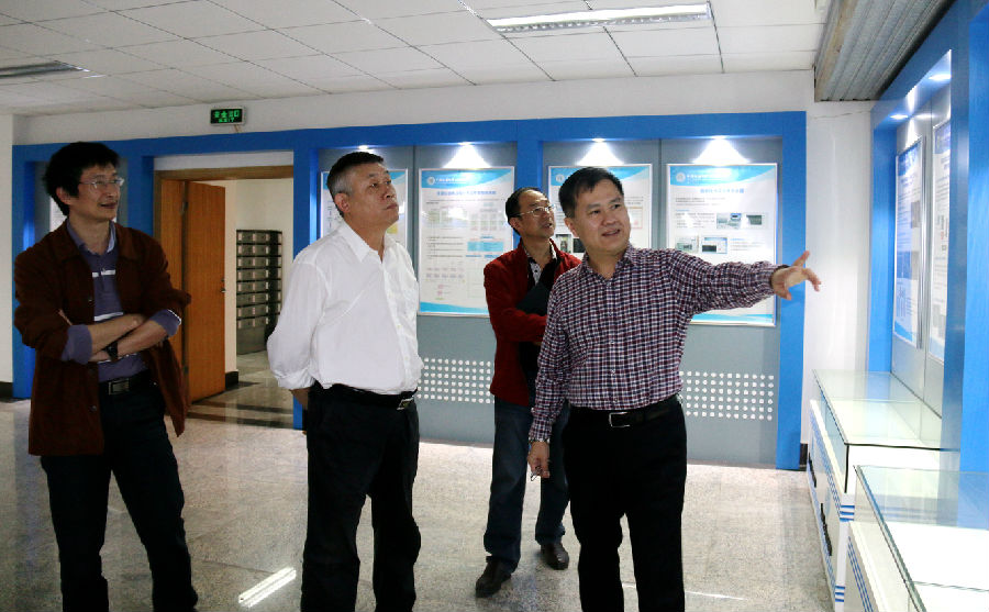 座谈会后,傅安洲参观了学院宣传栏,吴敏介绍了学院的科研工作。