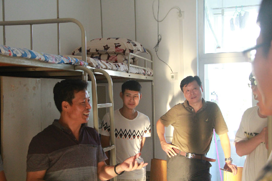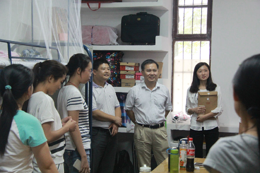 9月9日下午4点,自动化学院迎新工作已接近尾声,自动化学院院长吴敏、副院长王广君、副院长金星、党委副书记何建新等学院领导和老师分两组对新生寝室进行了走访。