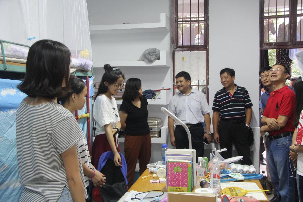 下午16时,院领导先后前往女生宿舍54栋和男生宿舍51栋走访2017级新生。走访过程中,老师们主要从生活和学习两个方面给予新生关怀和建议。生活方面,老师们主动关心新生的住宿情况,建议新生要规律作息、保持好宿舍卫生、搞好室友间关系,并特别强调新生要注意防盗防骗、加强自我保护意识。学习方面,老师们强调大学学习和中学学习的差异性,要重视学习自主性,要保留高中时的努力与干劲。同时他们建议新生合理安排时间,在大学中多去教室,图书馆,实验室学习,掌握好专业知识,为日后的科研和工作做好准备,切忌沉迷于游戏,荒废大好时光。