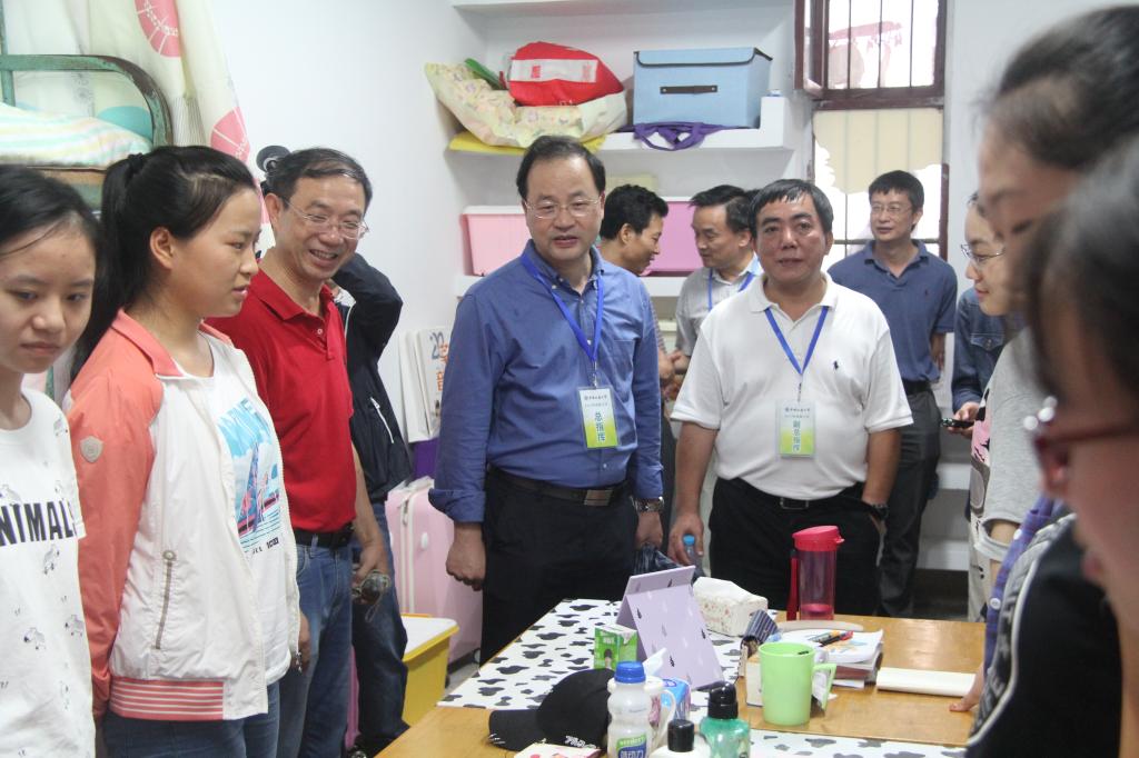 在贝博官网新生宿舍51#205,贝博官网领导巧遇校党委书记何光彩、副校长赖旭龙一行,校领导关切地询问贝博官网新生的住宿情况,了解家长及新生对学校的感受,并对学生的新生活提出建议和希望。贝博官网学生对校领导的到来表示非常激动,也深刻地感受到了学校对新生的关怀和问候,同时表示会发奋努力学习,争取为地大争光添彩。