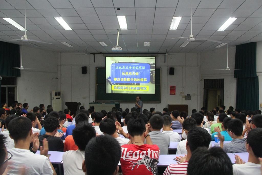 馆长以阿根廷国立图书馆馆长博尔赫斯的名言“如果有天堂,那应该是图书馆的模样”开篇,告诫同学们要多读书。他讲到,大学相对于中学的变化很大,比如课内学时数大幅度减少、课内信息量明显增加,为此同学们必须养成课前预习、课后复习的习惯。另外,参考书刊的作用显著提高、学习途径变得多样化,要广泛获取知识,开阔视野。所以学会利用好图书馆的资源,也是每个新生的必修课。