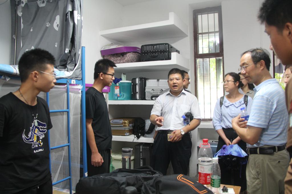 9月2日下午4点,贝博官网党委书记董浩斌,副院长王广君、党委副书记何建新、各系(中心)主任、学工组老师等走访了2018级新生宿舍,询问了同学们的生活、学习状况,提醒新生们尽快适应大学生活。在走访过程中,正好遇上校党委书记何光彩、副校长赖旭龙一行走访看望贝博官网新生,校领导关切的询问了学院新生们的住宿情况,并对新生们表示热烈的欢迎,希望他们能早日转换角色,适应大学生活,多与老师进行沟通,祝愿大家接下来的大学四年不负青春。