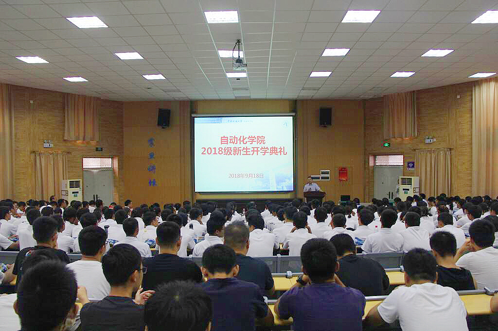 一年一度秋风劲,八方学子来相聚。9月18日上午,自动化学院2018级新生开学典礼在教三楼109隆重举行。院长吴敏教授,院党委书记董浩斌教授,副院长曹卫华、金星、王广君、陈鑫教授,自动化系熊永华、刘峰、宗小峰,赖旭芝教授,测控系晋芳副教授、实验中心副主任刘小波老师以及教师代表等出席典礼。自动化学院2018级全体本科生、研究生参加了开学典礼。典礼由院党委副书记何建新主持。