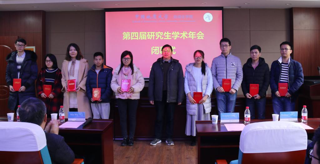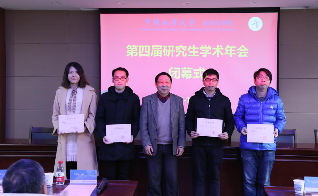 院党委副书记何建新宣读自动化学院《关于表彰2018年研究生科技论文报告会优秀论文奖的决定》和《关于表彰2018年研究生学术奖的决定》。本届研究生学术年会,共有85名研究生参加了研究生科技论文报告会。报告会分层次、分场次举行。学院推荐8篇论文参加学校研究生科技论文报告会,最终获评校级特等奖1项和二等奖7项。本届研究生学术年会评选出9篇优秀论文并授予优秀论文奖,19名研究生发表T3及以上期刊论文并获得自动化学院研究生学术奖。与会领导和嘉宾为获奖研究生颁发了获奖证书。