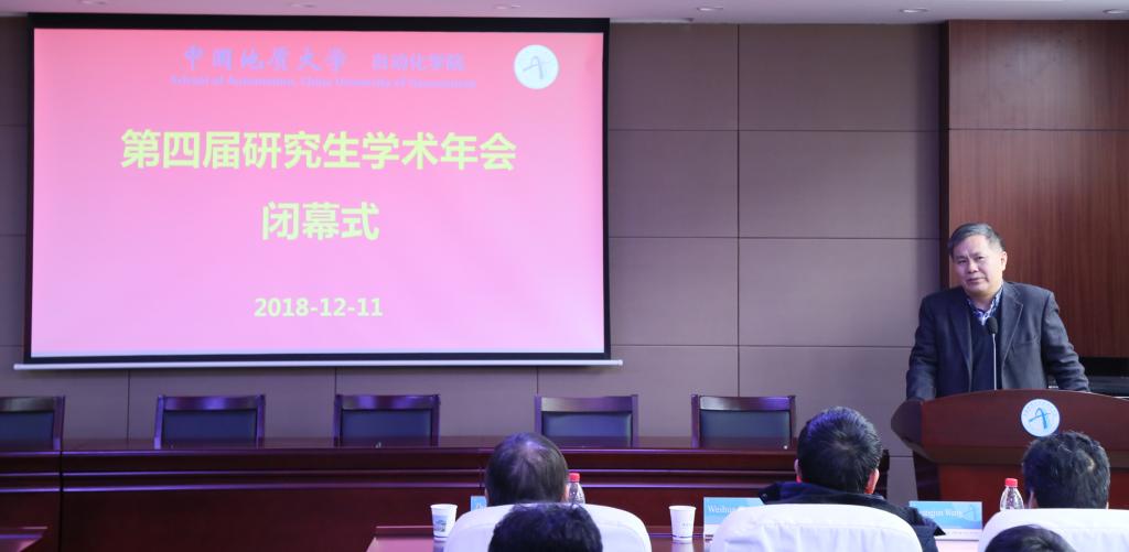 12月11日下午,自动化学院第四届研究生学术年会闭幕式隆重举行。特邀嘉宾加拿大维多利亚大学施阳教授、英国埃塞克斯大学胡豁生教授、研究生院成中梅副院长,以及自动化学院院领导、研究生导师和研究生出席了闭幕式。副院长陈鑫主持闭幕式。