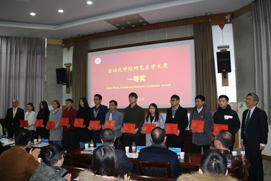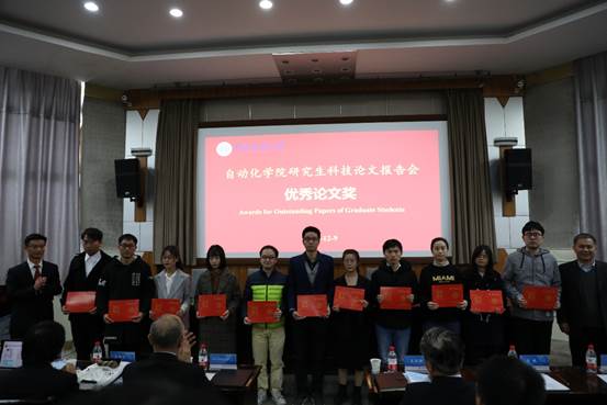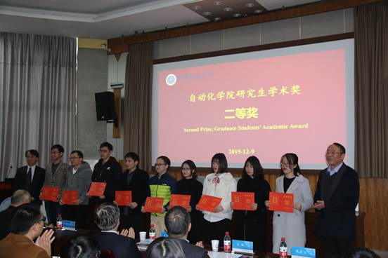 院党委书记董浩斌教授宣读自动化学院《关于表彰2019年研究生科技论文报告会优秀论文奖的决定》和《关于表彰2019年研究生学术奖的决定》。本届研究生学术年会,共有111篇论文在研究生科技论文报告会上交流。所有论文均为未发表成果,111篇论文编集成《第五届研究生学术年会——科技论文报告会论文集》。报告会分层次、分场次举行,提供了学生与老师、学生与学生之间良好的学术交流平台。本届研究生学术年会评选出11篇研究生科技论文报告会优秀论文并授予优秀论文奖,34名研究生发表高水平期刊论文并获得自动化学院研究生学术奖。获奖研究生在《Automatica》等控制领域顶级刊物发表论文4篇,T1论文17篇、T2论文22篇。与会领导和嘉宾为获奖研究生颁发了荣誉证书。