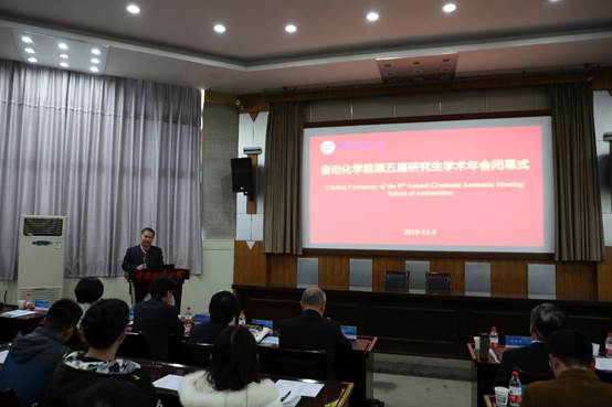 院长吴敏教授作总结发言。他指出,自动化学院研究生学术年会规模在不断扩大、水平在不断提高。他强调,研究生学术年会的目的在于提高研究生培养质量,实现人才培养国际化,使研究生培养质量达到国内外知名大学水平。他希望研究生学术年会能越办越好。最后,吴敏院长宣布第五届研究生学术年会圆满结束。