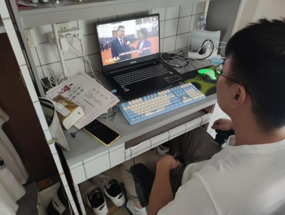 学生党员收看抗击疫情表彰大会