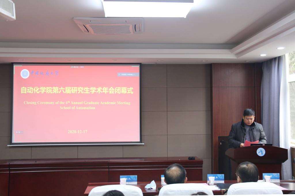闭幕式上,院党委副书记何建新宣读自动化学院《关于表彰2020年研究生科技论文报告会优秀论文奖的决定》和《关于表彰2020年研究生学术奖的决定》,与会院领导为获奖研究生颁发了荣誉证书。