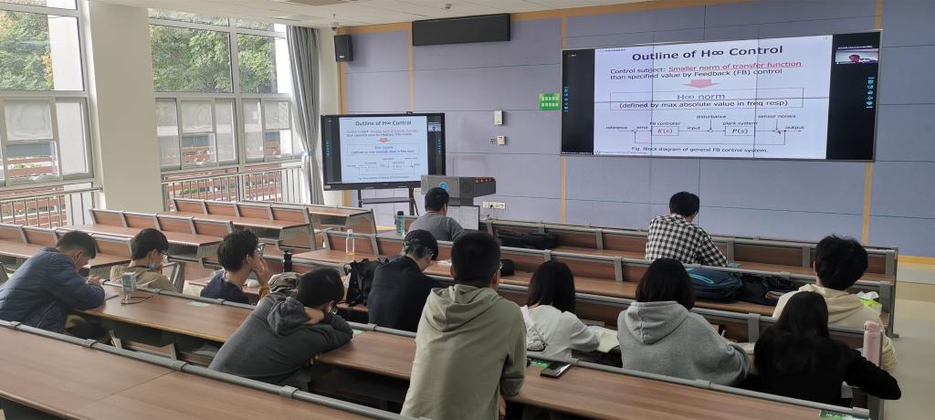 在新型冠状病毒感染的肺炎疫情防控期间,自动化学院坚持以研究生为中心,以办好研究生教育教学为目标,扎实推进研究生国际化课程建设,组织开设了由日本名古屋工业大学岩崎誠教授为主讲的国际化课程《高精度运动控制》。根据学校疫情防控期间研究生课程教学工作的部署和安排,学院创新授课模式,首次实现教授线上授课、学生线下教室集中听课的新模式。经过中日三位教授的精心组织,克服时差、网络质量等问题,实现授课过程清晰,师生交流顺畅,充分保证了国际化课程的有效开展。